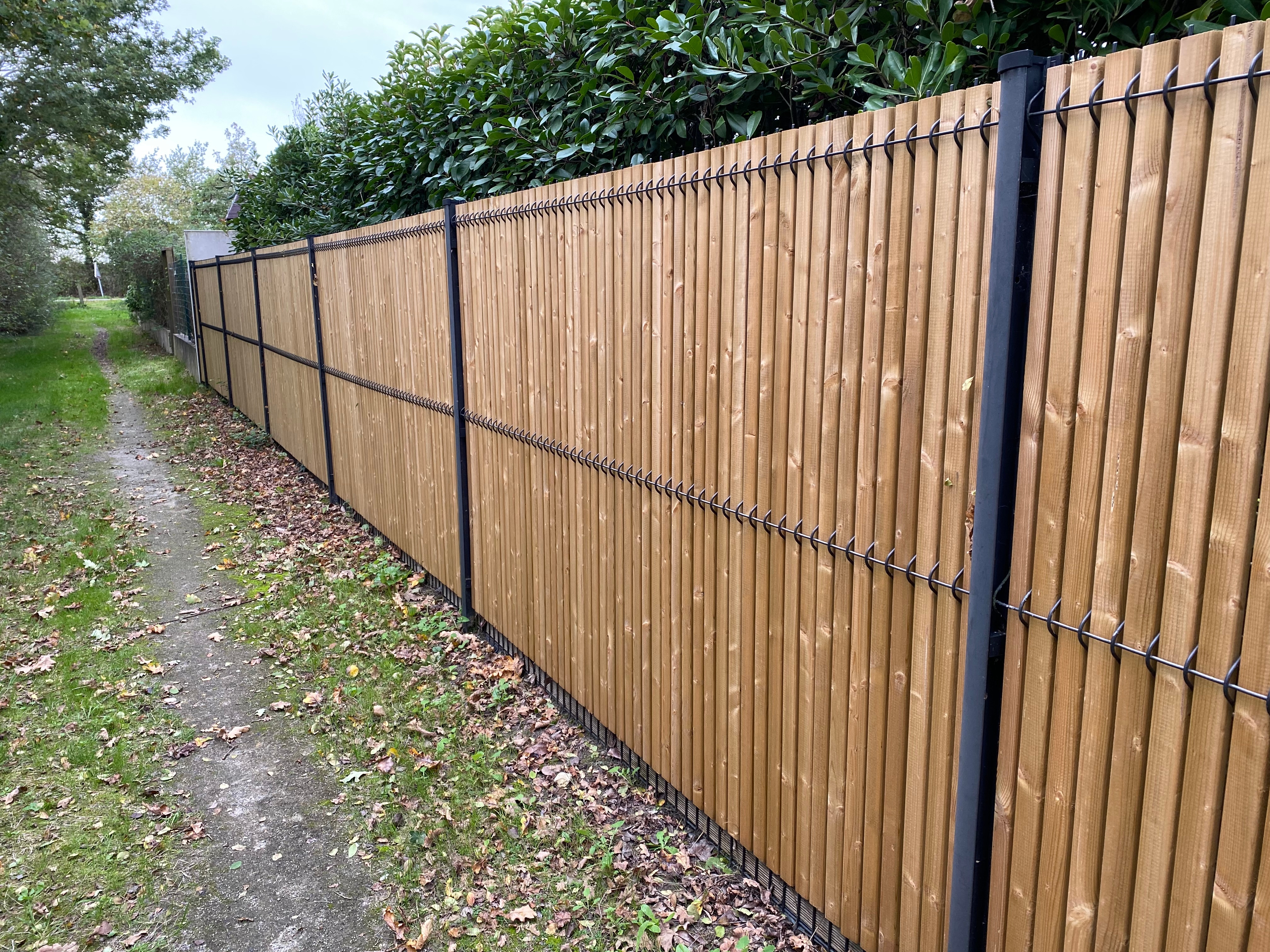 La clôture en PVC : composée de lamelles d’occultation qui se glissent dans un grillage rigide, elle est une option très demandée, à un prix plus abordable que le bois et demandant moins d’entretien tout en restant durable.